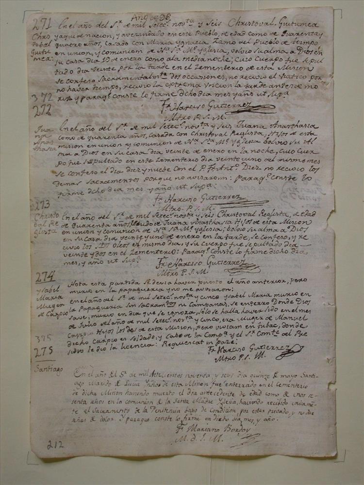 Tumacácori Mission Record, page 212