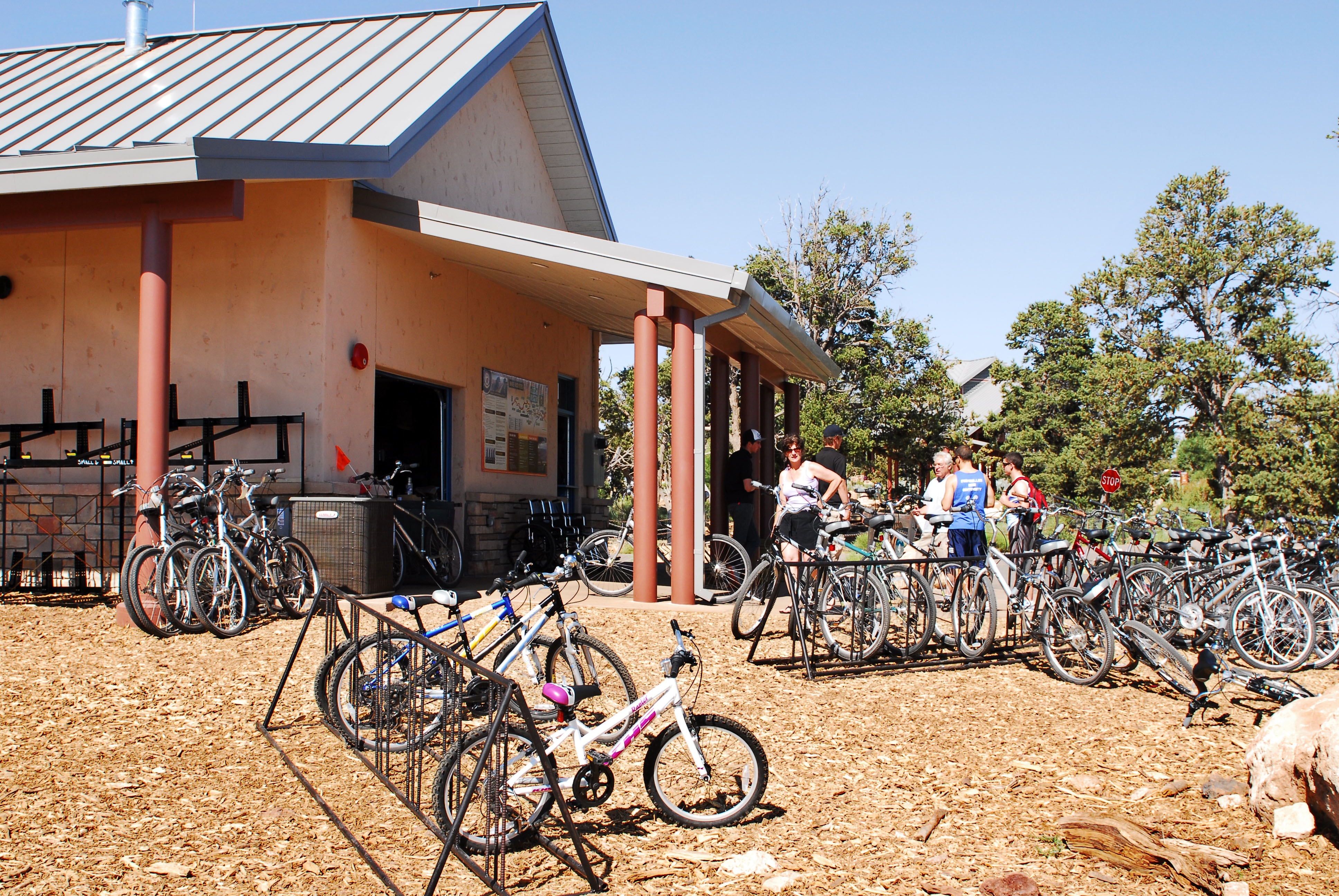 Bright Angel Bicycles On the South Rim, bicycle rentals and guided bicycle tours are available between April 1 and October 31. (other times, when weather permits - check the Bright Angel Bicycle website below for current availability) Also featured is a coffee bar and café with a grab go menu targeted towards hikers, bikers and pedestrians. The Café is open year-round. Bright Angel Bicycles offer a variety of different sizes to accommodate the whole family. All rental bicycles are user friendly, featuring a simple 7 speed twist shift gear mechanism that easily allows any user to freely control the bicycle. Each bicycle is fit to the rider before leaving the rental area to ensure a safe and enjoyable ride. For more information visit:
