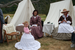 A little girl tries on a hoop skirt under the watchful eye of NPS volunteers Anne Lorgen and Kathy Wieck.
