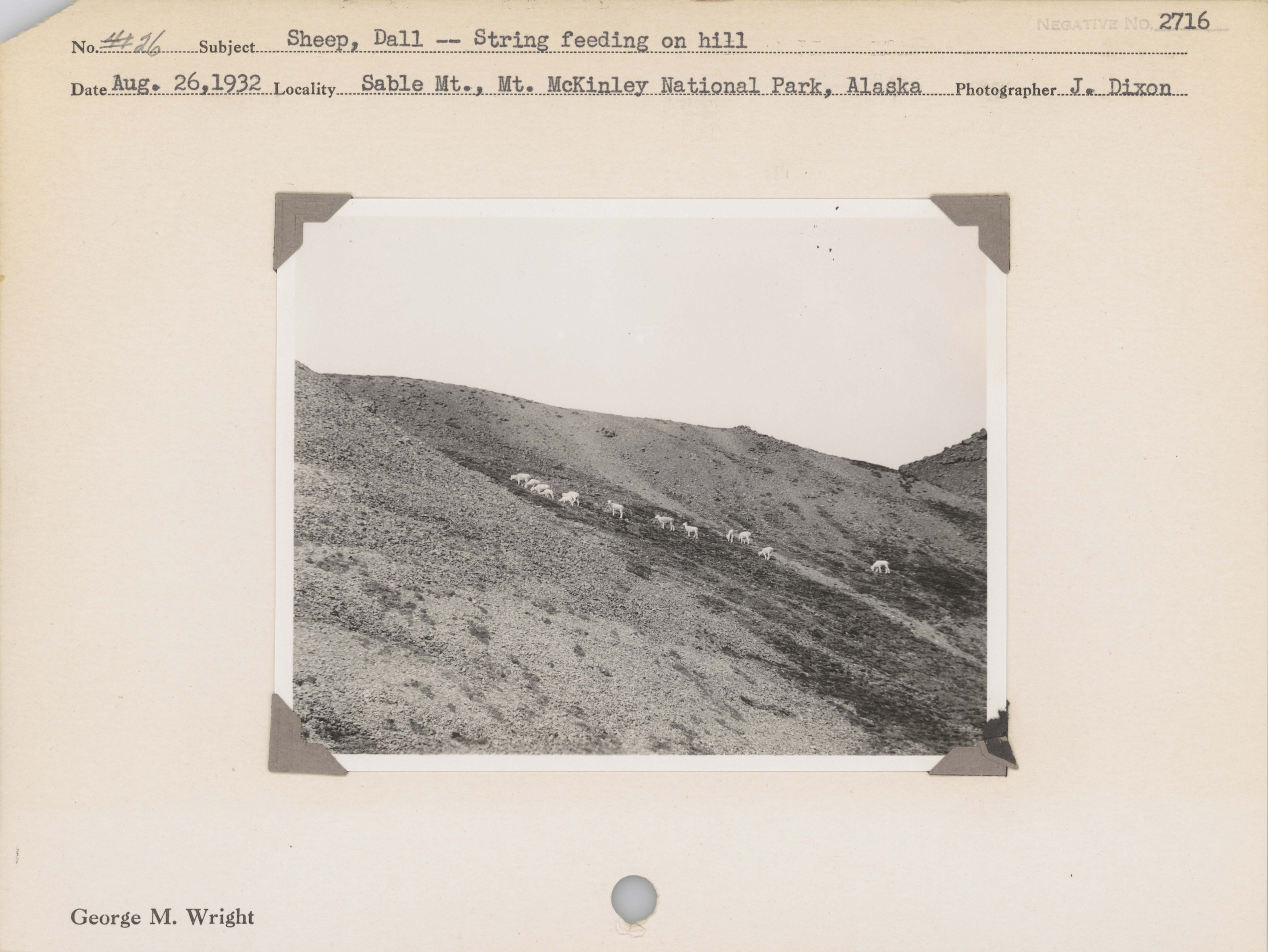 Sheep, Dall--String feeding on hill. Locality: Sable Mountain, Mount McKinley Park, Alaska [Denali National Park & Preserve]. Negative #: 2716