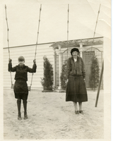 John Roosevelt and Marion Dickerman on a swing set at the O'Day home.