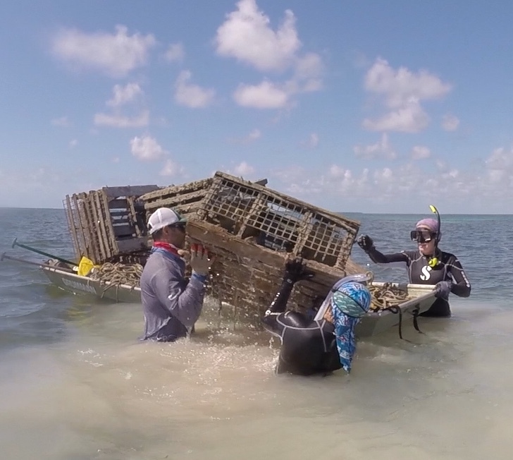 Biscayne National Park and Florida DERM employees removing derelict lobster traps