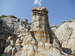 A hoodoo, or column, topped by a large piece of petrified wood.