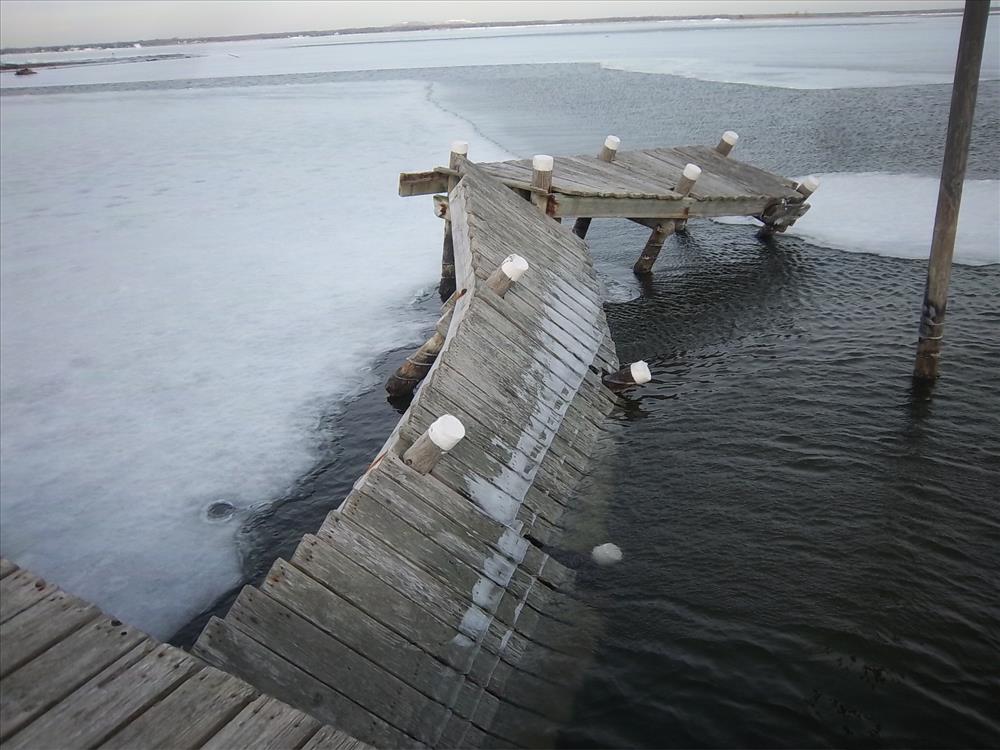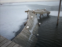 Photos of ice damage taken at Old Inlet public marina in February 2011 at Fire Island National Seashore.