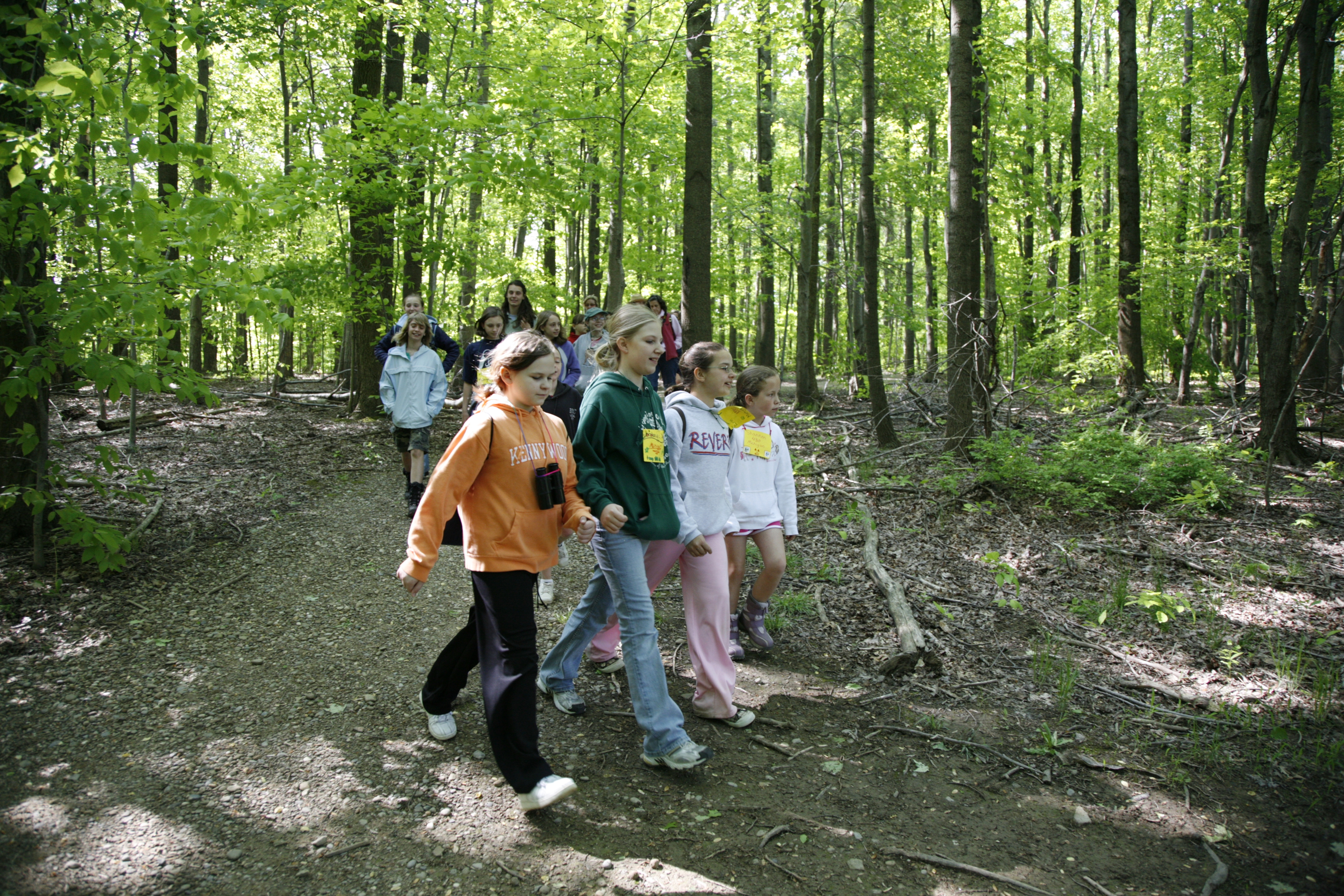 Girl scouts hike along trails at Cuyahoga Valley Environmental Education Center. || For many years, girl scout troops have participated in an overnight retreat at Cuyahoga Valley Environmental Education Center. Activities vary annually and help participants earn select badges. These photos were taken in May 2007.