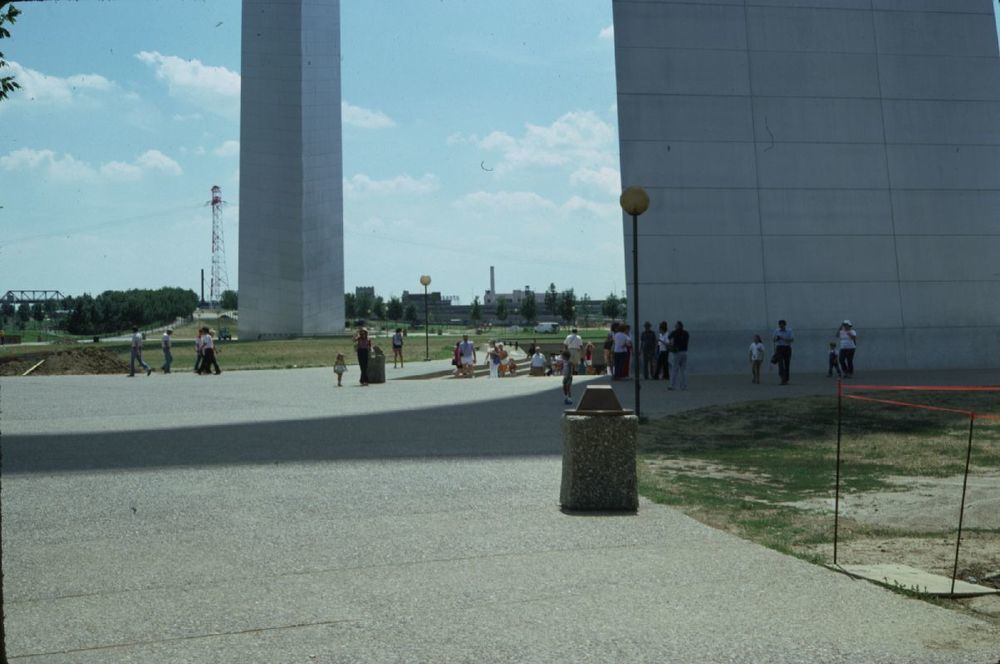 Visitors near the legs ; August 1980
