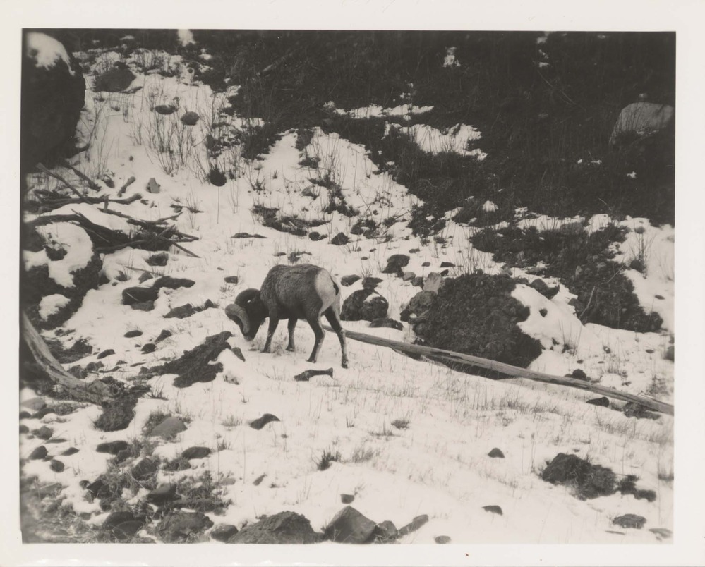 Mammals--Bighorn Sheep--Ram. Locality: Gardiner River, Yellowstone National Park. Negative #: 8748