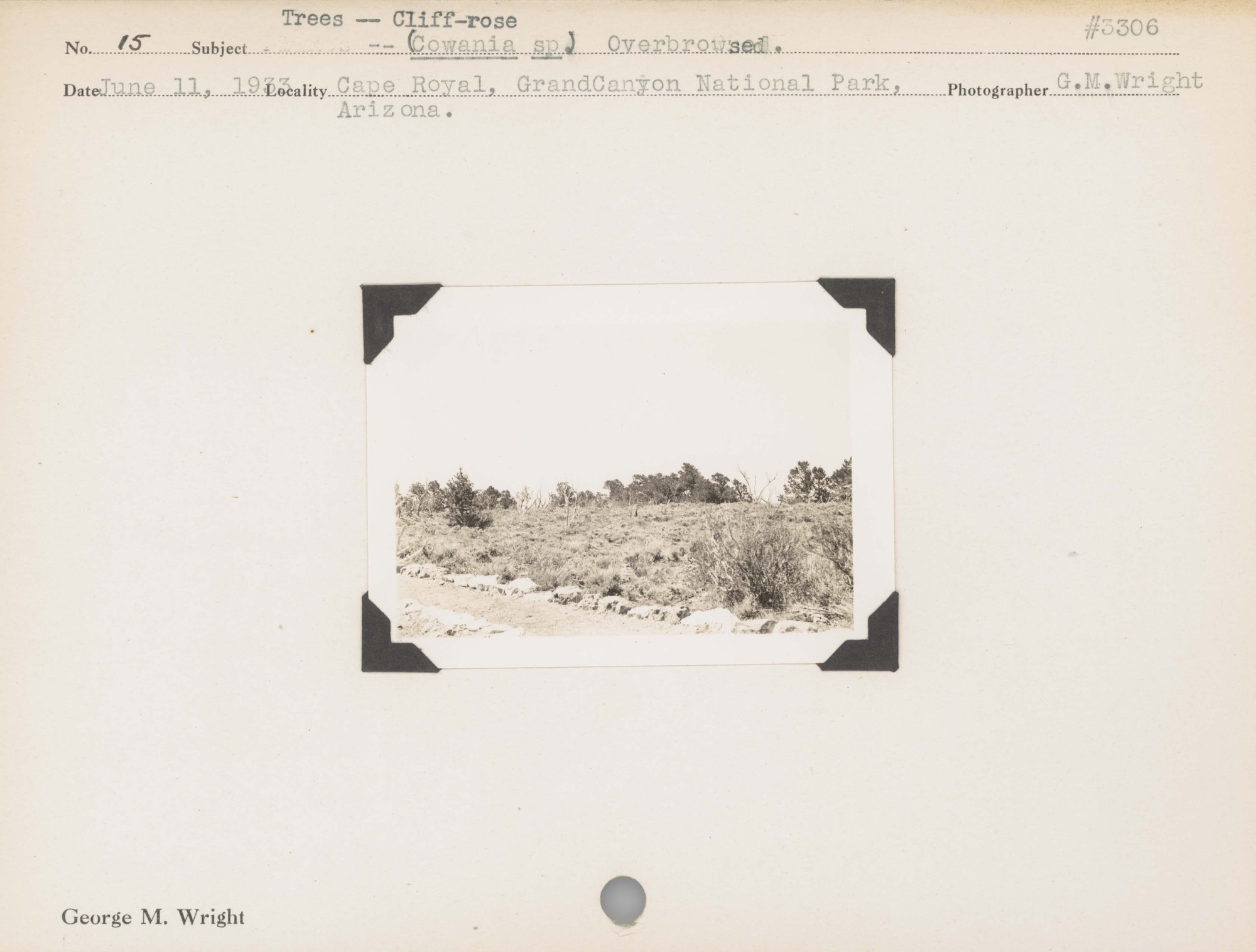 Trees – Cliff Rose (Cowania species) overbrowsed. Negative #: 3306. Locality: Cape Royal, Grand Canyon National Park, Arizona.