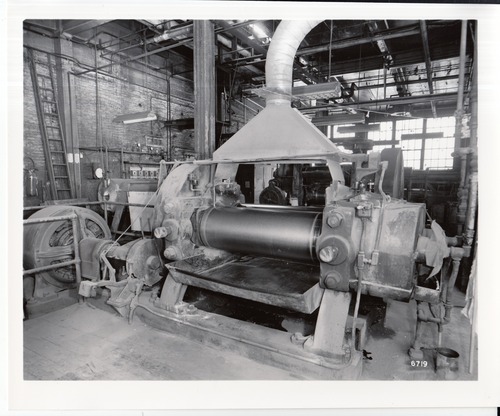 Edison Storage Battery Division, rubber plant building, interior, extruder.