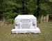 Constructed of Barre,VT, granite, the 7' x 3'7" rough-hewn base supports a smooth block with a tapered top; total height is 4'9". It features 2 bas reliefs of crossed rifles & accoutrements. "OHIO" & the inscription are in raised lettering.