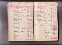 Some of the markings made in pencil in these cash books were made by ENHS Curator Leah Burt during the 1970s and/or early 1980s. For Leah Burt handwriting examples see pages for: December 19, 1921 (cash book 17) ; February 12, 1923 (cash book 17) ; October 27, 1924 (cash book 18) ; December 01, 1925 (cash book 19).