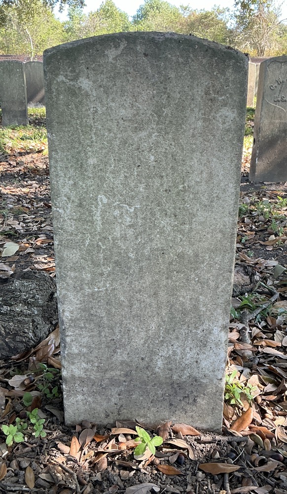 Back of historic upright marble headstone with recessed shield face.