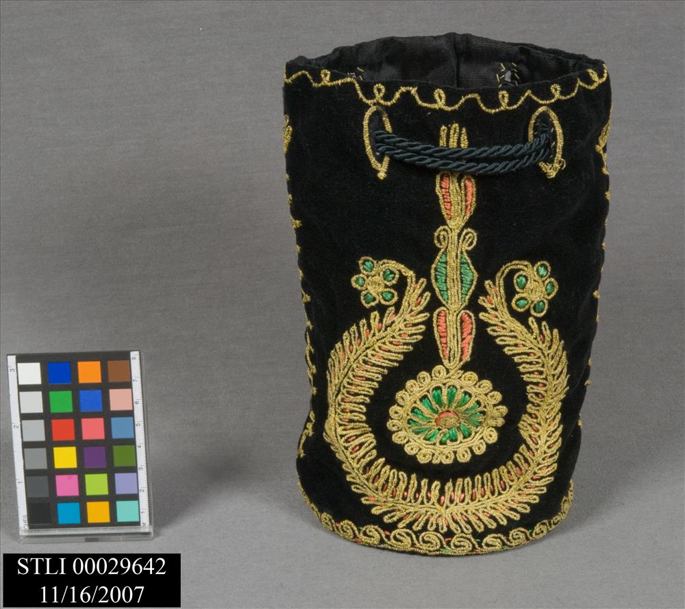 BLACK VELVET, EMBROIDERED WITH METALLIC COUCHING THREAD, SILK AND SATIN EMBROIDER STITCHING WITH FLORAL MOTIF. <CRMATCHING JACKET CATALOGED AS STLI 29641.