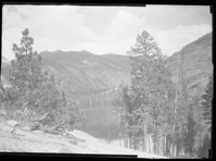 Lake Merced from the west, stunted pine in f.g.. Yosemite Park, Cal.