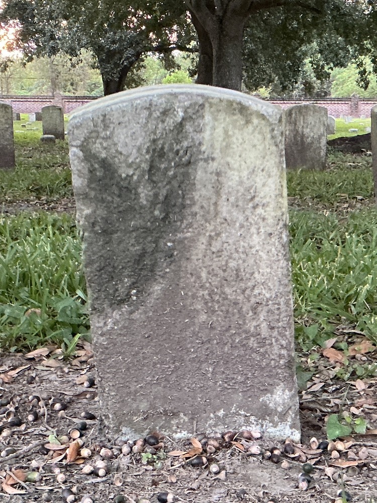 Back of historic upright marble headstone with recessed shield with recessed lettering face.