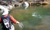 A fisherman readies his net to retrieve his catch on a brisk November day along the Pecos River