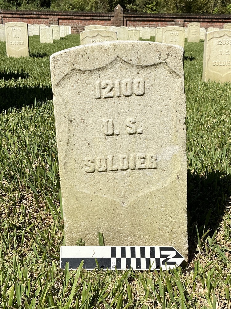 Headstone at Chalmette National Cemetery. Grave ID: 12100. Located at Section 148, Row 4, Site Number 5. Photo taken as part of the 2024 condition assessment and inventory.