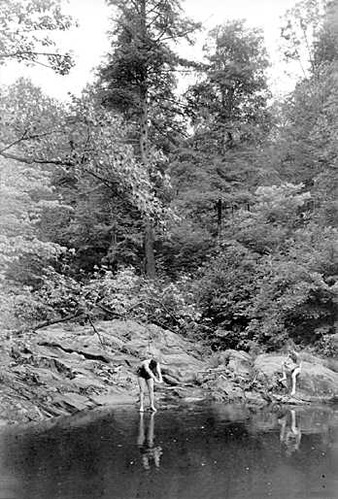CCC (Civilian Conservation Corps) boys at White Oak Canyon swimming pool. Shenandoah National Park.