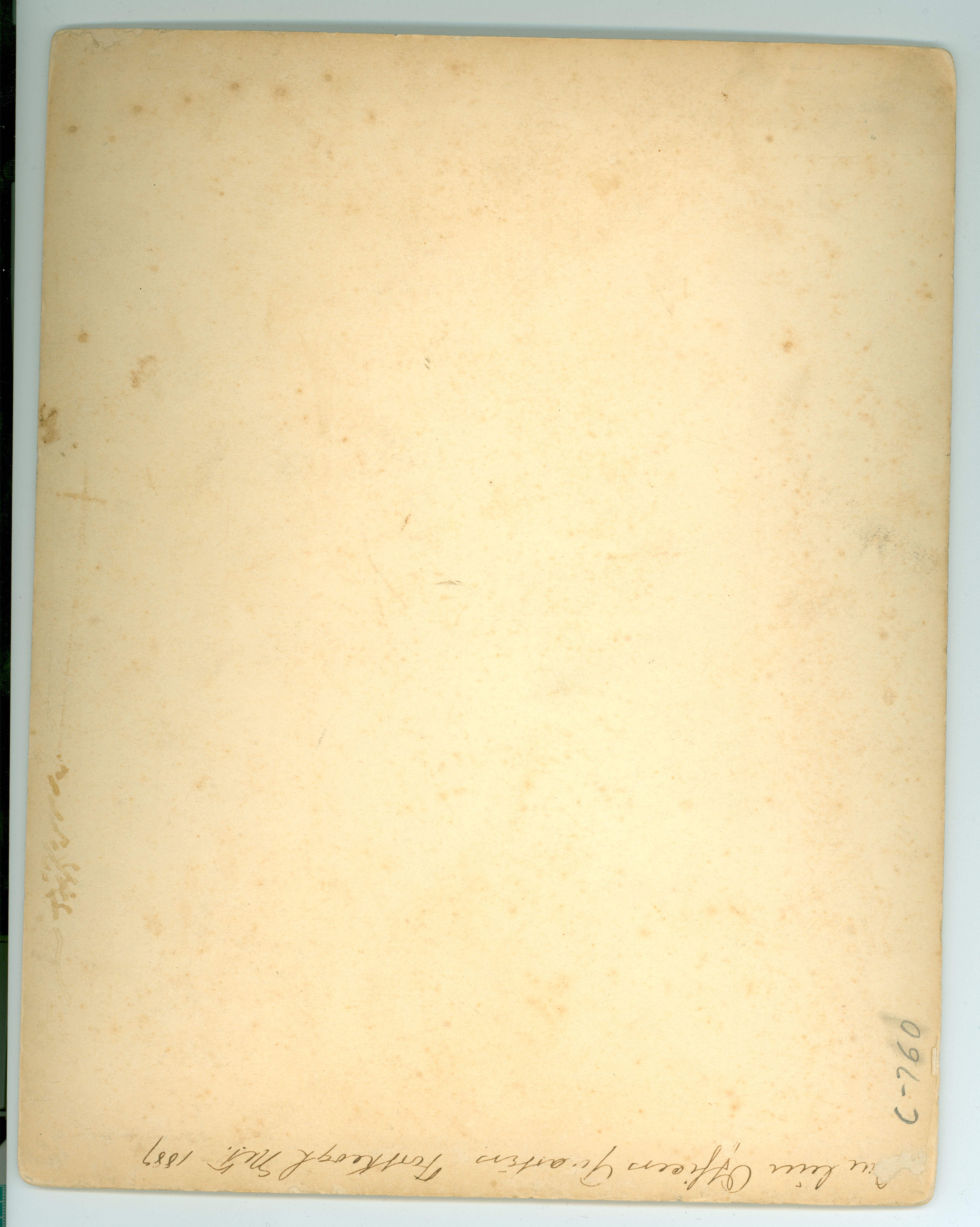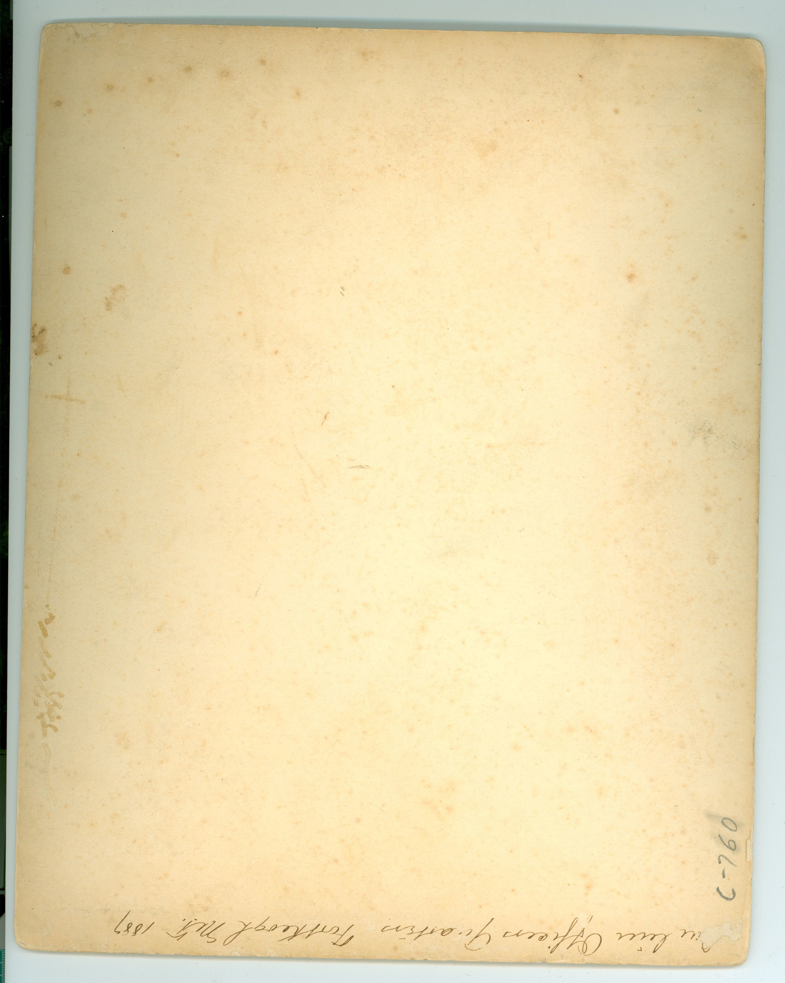 LIBI_00030_00760; A sepia toned photo of an officer in front of Officers’ Row at Fort Keogh. Handwritten notation in ink at the bottom reads: “Ft. Keogh- HKB Officer of the Day!” On verso, a handwritten note in ink reads: “ [two illegible words] Officer Guartess Forth Keogh M.T. 1889” In pencil “C-760” is written. ; photograph; Courtesy of the National Park Service, Little Bighorn Battlefield National Monument, LIBI_00030_00760, Unknown Photographer, "Officer in Front of Officers' Row at Fort Keogh, Montana," 1889