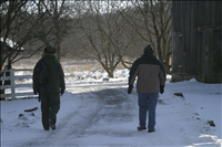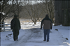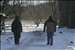 Visitors and park rangers hike on the Stanford Trail in winter.