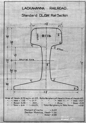 Lackawanna Railroad-Standard DL and W rail section 91lbs.