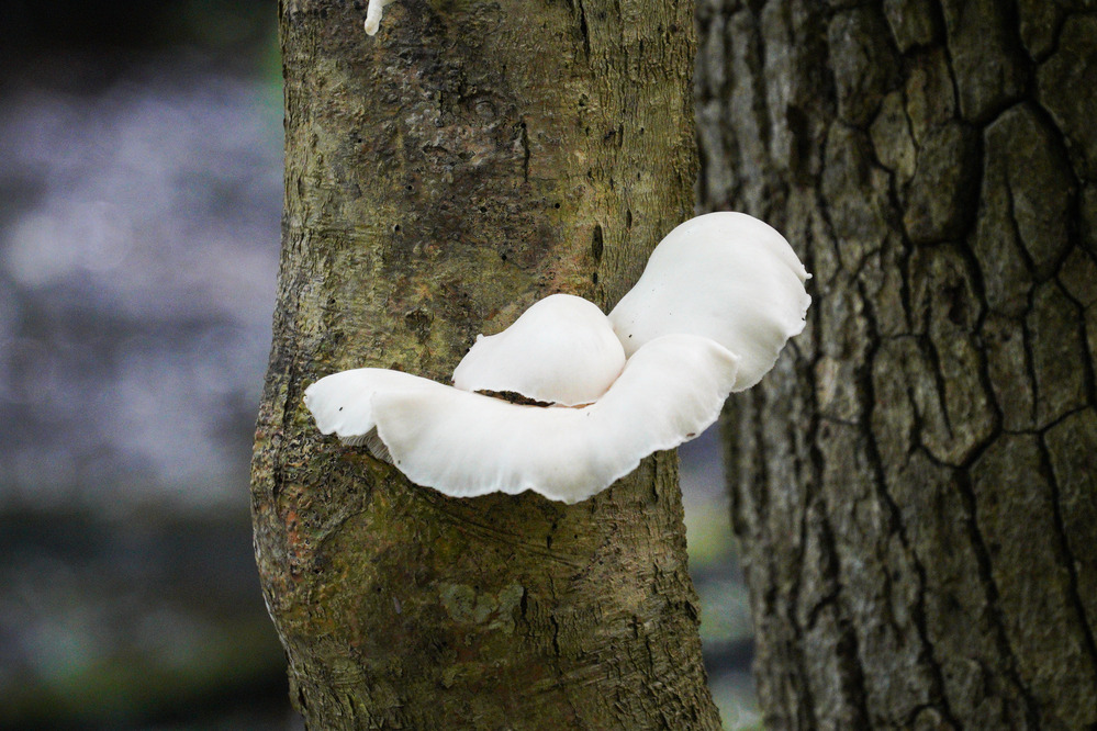 An Oyster Mushroom grows on a tree trunk in the Sunken Forest.