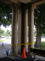 Failure of historic fieldhouse portico ceiling, East Potomac Park, September 2007. Needs repair.