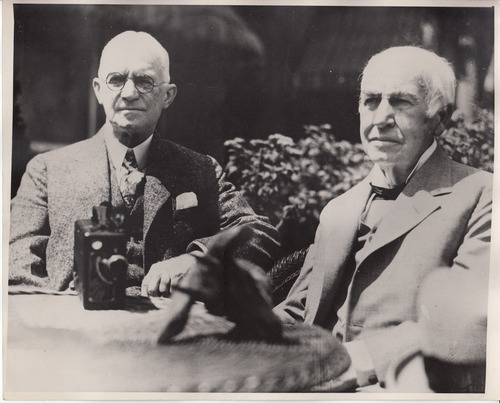 George Eastman and Thomas Edison at the introduction of Kodacolor film at Eastman's house.