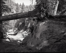 Dirt road from Potato Hollow to Kolob Creek with a small green fir tree uprooted and pushed off road. ; ZION Museum and Archives Image 101_02_003 ; ZION 8291
