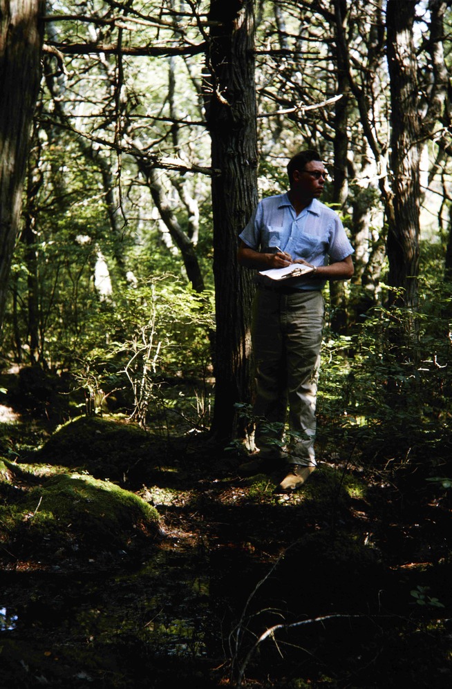 Dr. Randall surveys White Cedar Swamp in Cape Cod National Seashore.