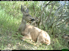 A remote camera trap captures a mule deer taking a rest in the Santa Monica Mountains.