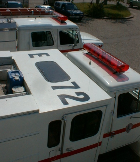 Fire engines at Ash Mountain Headquarters Fire Station, Sequoia and Kings Canyon National Parks, May 2002