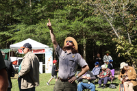 Ranger Nathan points toward the eclipse on October 14, 2023.