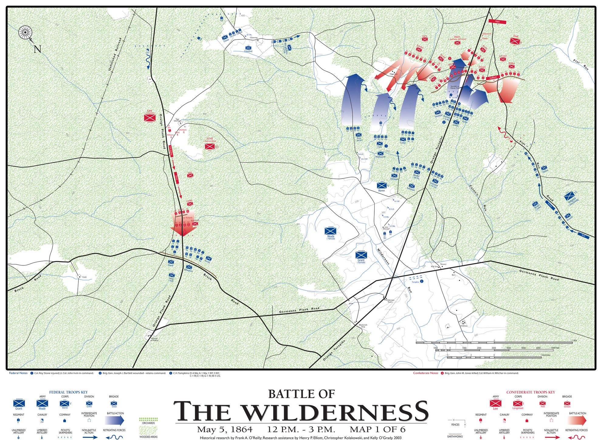 Battle of the Wilderness troop movement map. May 5, 1864; 12pm-3pm.