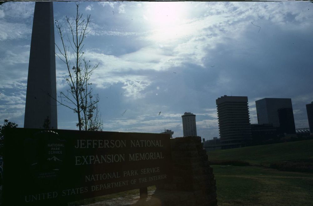 Jefferson National Expansion Memorial with Arch in background ; October 1977