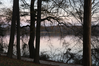 Popes Creek from upper trail to the Historic Area at Sunset. View is through trees.