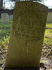 Front of historic upright marble headstone with recessed shield face.