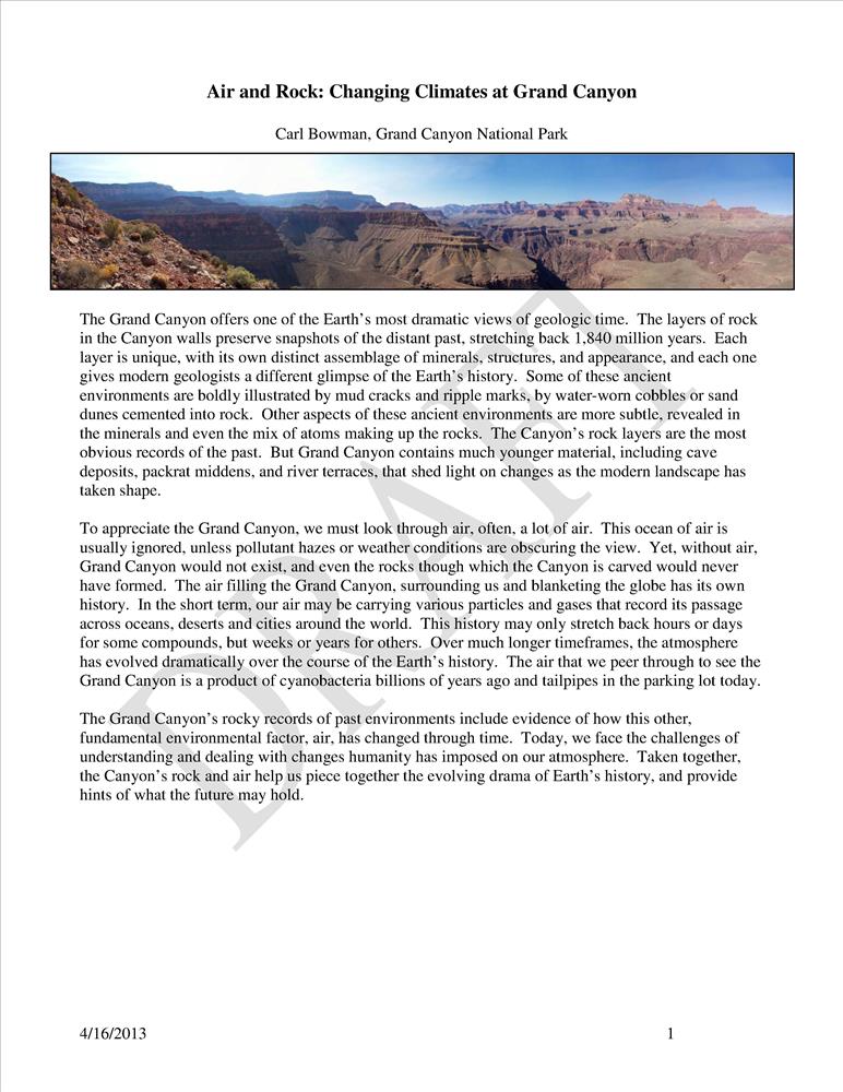 Reviews the changing climate at the location of the present Grand Canyon over the last two billion years.