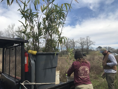SECEPMT at OCMU transplanting native river cane for future planting