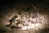 Sea turtle hatchlings emerge from their nest, crawling through the predator exclosure.