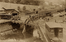 This photograph shows the Honesdale docks in 1898, the last year of operation for the canal. While the rail cars on the left are loaded with passengers instead of coal, in the background can still be seen boats in the process of loading coal.