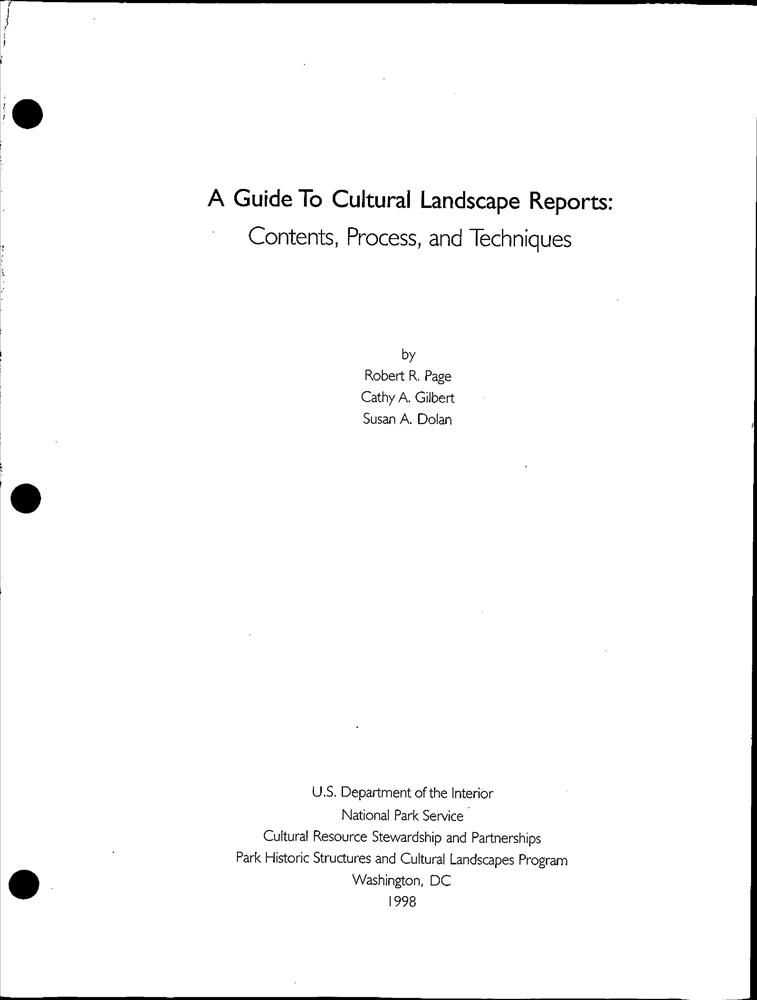Guide to Cultural Landscape Reports: Contents, Process and Techniques