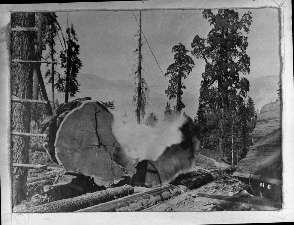 Logging, Sequoia stump being blasted apart, from Ed. Bryant's album
