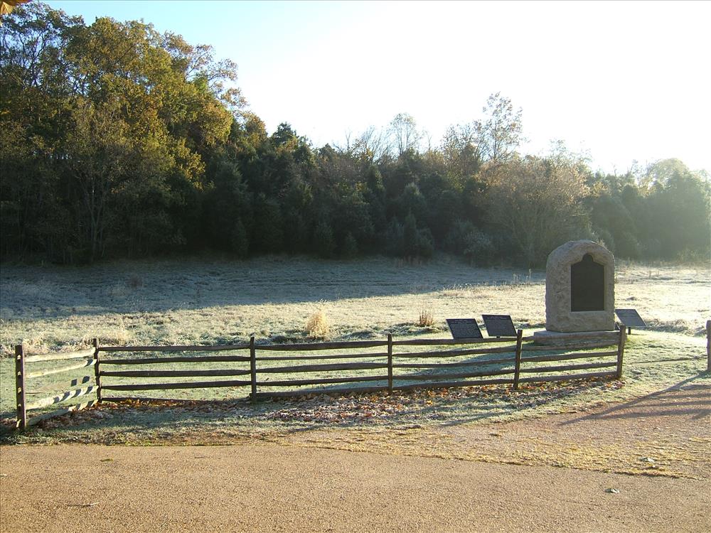 This is the site of the Federal Army approach on the Burnside Bridge at Antietam. The location of the present day cedar trees marks the location of the open field where the 9th Corps troops under General Burnside deployed.