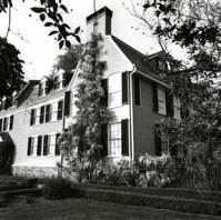 Photograph of the side of the Old House with wisteria, 1960s. The wisteria continues to bloom every spring.