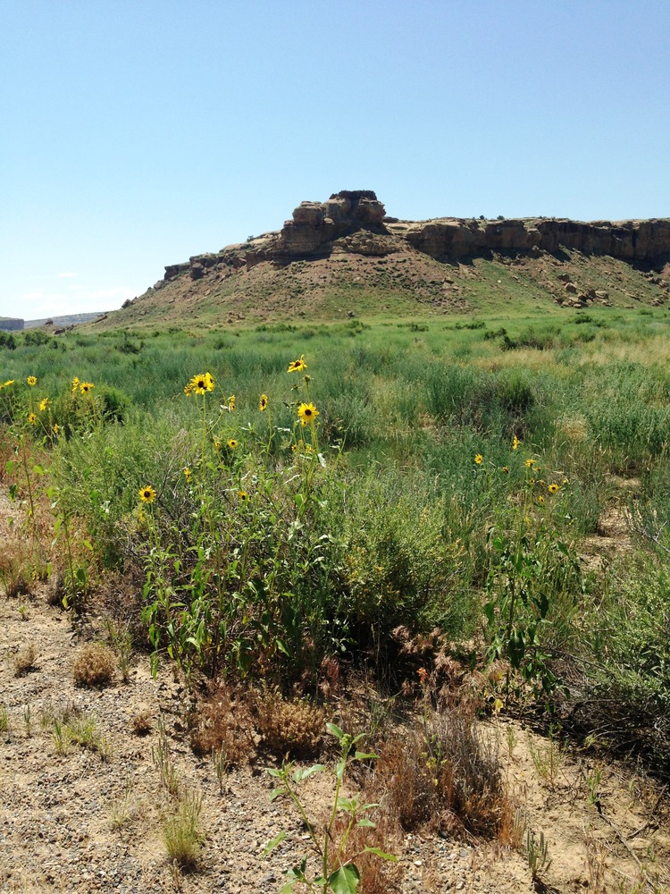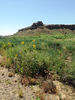 Tall, yellow sunflowers growing in a field of grass and shrubs spotted by Jody Mays in June of 2015.