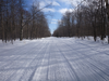 Miners Castle Road in winter becomes a groomed snowmobile trail.