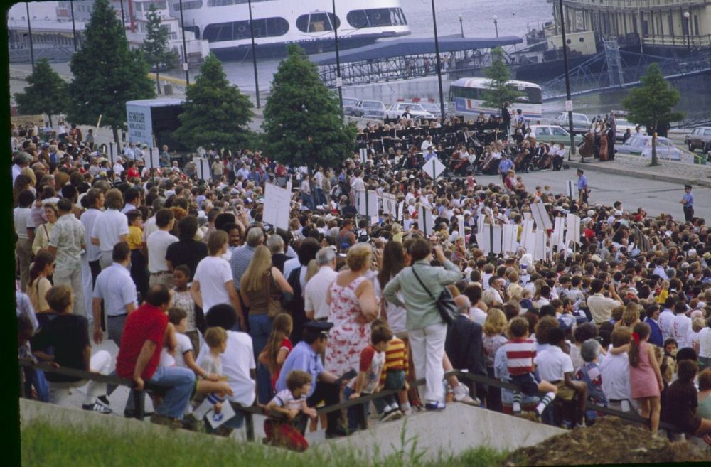 Crowd waiting for Jimmy Carter. ; March 1980