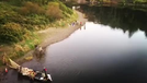 Video showing images from overhead of scientists using nets to catch fish to count and estimate the number in the river.