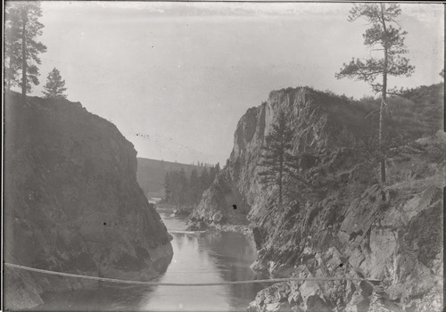 Spokane River and footbridge. Undated.